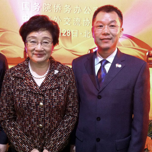 国务院庆祝中国成立62周年国庆招待会上, 国务院侨办李海峰主任与华人互助中心主席赵炳荣合影