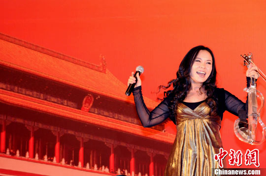 图为董文华在招待晚宴上演唱