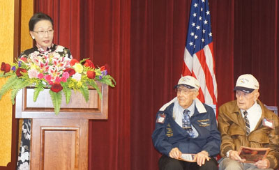 中国驻旧金山总领事袁南生致辞表示,抗日战争时期,美国志愿援华航空队“飞虎队”与中国人民并肩作战,“飞虎队”的英雄们不仅在中国家喻户晓,在美国同样倍受敬仰。是中美两国联合打击日本法西斯侵略的精彩篇章。在中美关系史中占据重要篇章。向老兵致敬就是要传承和发扬飞虎队精神,为增进中美两国人民的友谊而继续努力。