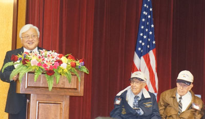 前美国总统尼克松的外孙考克斯在致辞中推崇,飞虎老兵们是真正的美国英雄,他表示21世纪是属于太平洋的世纪。