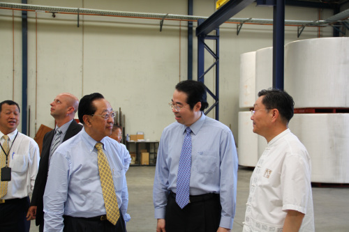 2月4日上午,在参观澳大利亚知名华人企业家魏基成先生创办的ABC造纸公司时,许又声饶有兴趣地听取了公司情况的介绍,察看了造纸车间和仓储设施。当得知该公司近年在生产经营业绩稳步上升的同时,热情参与社会公益事业,积极为柬埔寨和中国白内障患者复明手术提供资助、为澳大利亚昆士兰州水灾受灾民众捐款时,他十分高兴,称赞魏先生和许多事业有成的旅澳侨胞一道为澳大利亚的经济和社会发展作出了宝贵贡献,充分展现了海外华人的良好形象和社会责任感。
