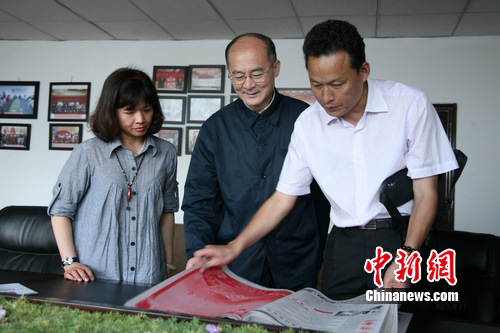 中国国务院侨办副主任赵阳(中)浏览《非洲时报》为“文化中国·四海同春”活动所作的报道