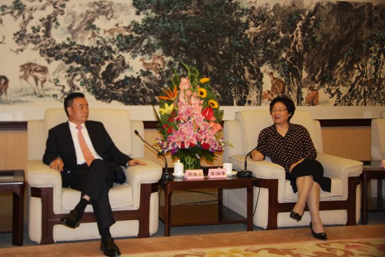 6月14日下午, 李海峰主任、任启亮副主任在办内会见了专程来访的以周泽荣会长为团长的广东省侨商投资企业协会代表团一行。