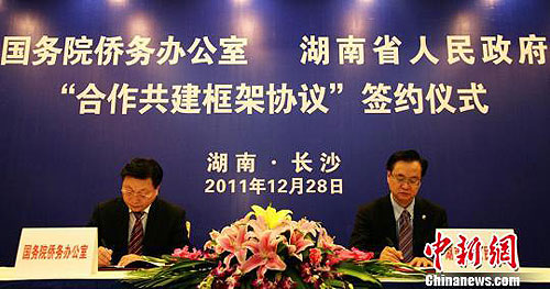 28日,国务院侨办和湖南省人民政府在此间正式签署《办省合作共建框架协议》,旨在充分利用侨务资源,实现湖南在中部崛起中的新跨越。国务院侨办副主任马儒沛、湖南省副省长李友志代表双方签署协议。